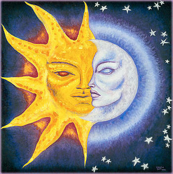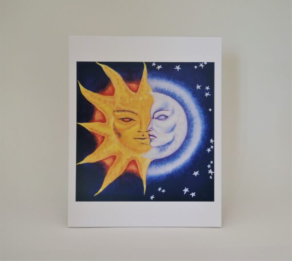 After spending time in Mexico, the sun & moon came in to many of my paintings. Honoring the divine masculine in balance with the divine feminine.