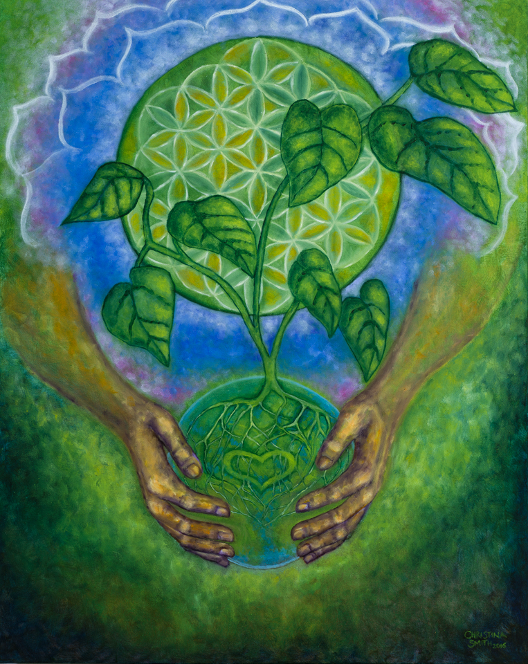 Inspired as a trade for a cranial sacral healer I know… Bringing awareness to the connectedness of all of life. From Spirit, to Earth, to all life, and back to the smallest particle of being, all connected.